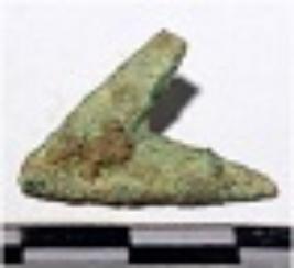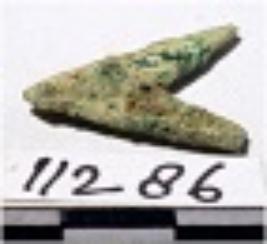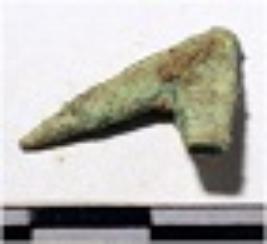 | Description / विवरण | A copper arrow head triangular in shape pointed at one end of rough surface. |