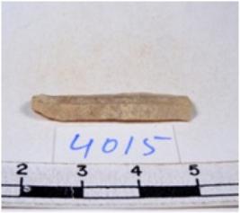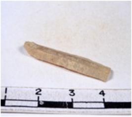 | Description / विवरण | A fragment of a rectangular shaped chert blade showing dorsal sides with sharp edges having smooth surface and triangular section. |