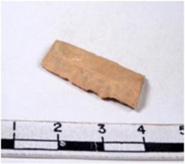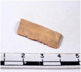 | Description / विवरण | A fragment of a rectangular shaped chert blade showing dorsal sides with sharp edges having smooth surface and triangular section. |