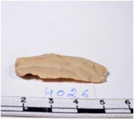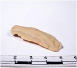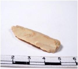 | Description / विवरण | A fragment of a rectangular shaped chert blade showing dorsal sides with sharp edges having smooth surface and triangular section. |