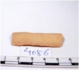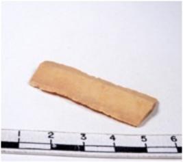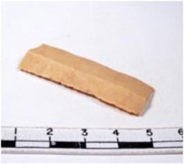 | Description / विवरण | A fragment of a rectangular shaped chert blade showing dorsal sides with sharp cutting edges having smooth surface and triangular section. |