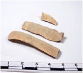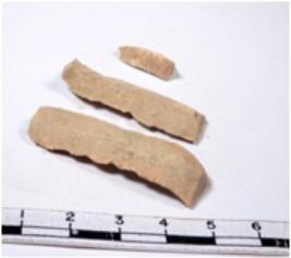 | Description / विवरण | A fragment of a rectangular shaped chert blade showing dorsal sides with sharp edges having smooth surface and triangular section. |