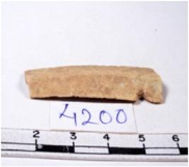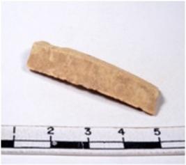 | Description / विवरण | A fragment of a rectangular shaped chert blade showing dorsal sides with sharp edges having smooth surface and triangular section. |
