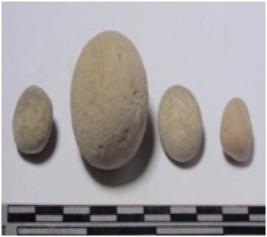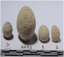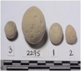 | Description / विवरण | A terracotta sling ball, round in shape of smooth surface. |
