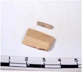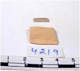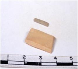 | Description / विवरण | A fragment of a rectangular shaped chert blade showing parallel sides with sharp edges having smooth surface and uneven section. |