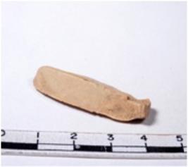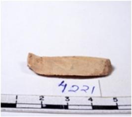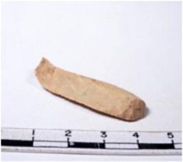 | Description / विवरण | A fragment of a rectangular shaped chert blade showing dorsal sides with sharp edges having smooth surface and triangular section. |