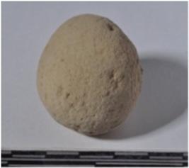 | Description / विवरण | A stone sling ball, round in shape of smooth surface. |