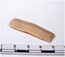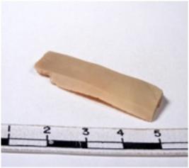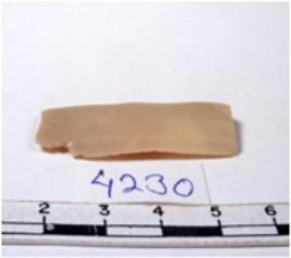 | Description / विवरण | A fragment of a rectangular shaped chert blade showing dorsal sides with sharp edges having smooth surface and triangular section. |