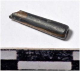 | Description / विवरण | A fragment of a stone drill bit, circular in section broken from both end of smooth surface. |