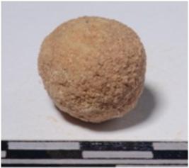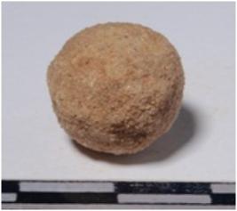 | Description / विवरण | A small stone sling ball round in shape of rough surface. |