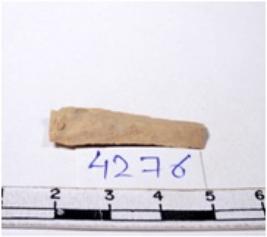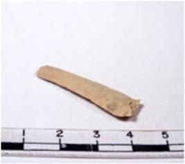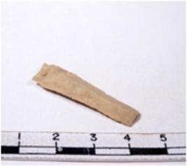 | Description / विवरण | A fragment of a rectangular shaped chert blade showing dorsal sides with sharp edges having smooth surface and triangular section. |