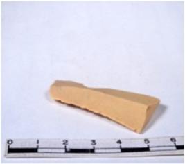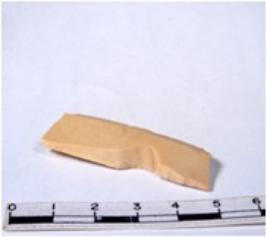 | Description / विवरण | A fragment of a rectangular shaped chert blade showing dorsal sides with sharp cutting edges having smooth surface and triangular section. |