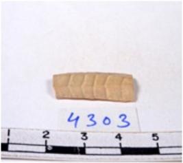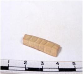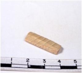 | Description / विवरण | A fragment of a rectangular shaped chert blade showing dorsal sides with sharp cutting edges having smooth surface and triangular section. |