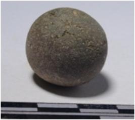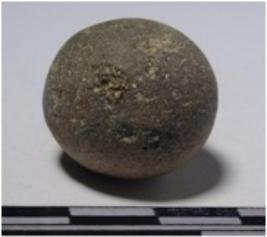 | Description / विवरण | A stone sling ball, round in shape of smooth surface. |