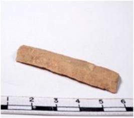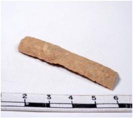 | Description / विवरण | A fragment of a rectangular shaped chert blade showing parallel sides with sharp edges having smooth surface and uneven section. |