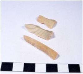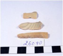 | Description / विवरण | A fragment of a rectangular shaped chert blade showing dorsal sides with sharp cutting edges having smooth surface and triangular section. |
