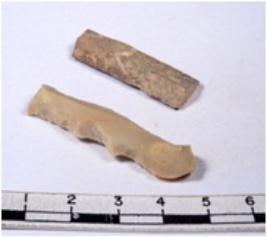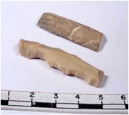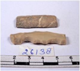 | Description / विवरण | A fragment of a rectangular shaped chert blade showing dorsal sides with sharp edges having smooth surface and triangular section. |
