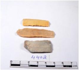 | Description / विवरण | A fragment of a rectangular shaped chert blade showing dorsal sides with sharp edges having smooth surface and triangular section. |