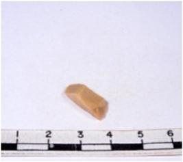 | Description / विवरण | A fragment of a rectangular shaped chert blade showing dorsal sides with sharp edges having smooth surface and triangular section. |
