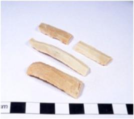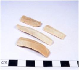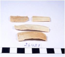 | Description / विवरण | A fragment of a rectangular shaped chert blade showing dorsal sides with sharp cutting edges having smooth surface and triangular section. |