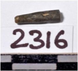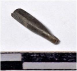 | Description / विवरण | A fragment of a stone drill bit, circular in section, broken from both end of smooth surface. |