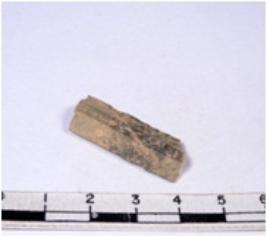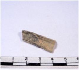 | Description / विवरण | A fragment of a rectangular shaped chert blade showing parallel sides with sharp edges having smooth surface and triangular section. |
