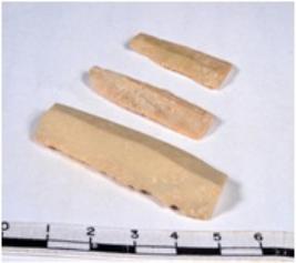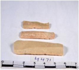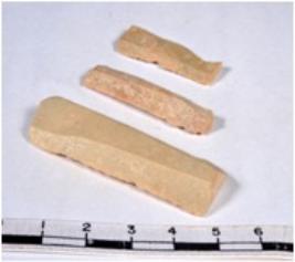 | Description / विवरण | A fragment of a rectangular shaped chert blade showing dorsal sides with sharp cutting edges having smooth surface and triangular section. |