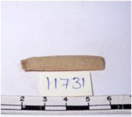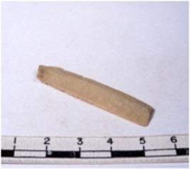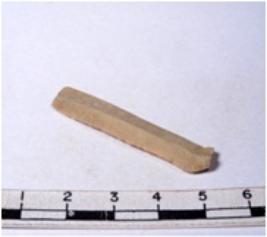 | Description / विवरण | A fragment of a rectangular shaped chert blade showing dorsal sides with sharp edges having smooth surface and triangular section. |