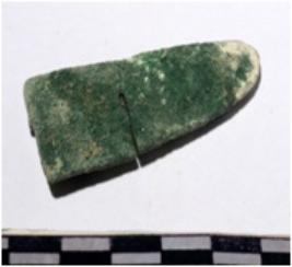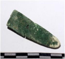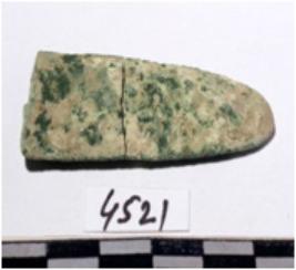 | Description / विवरण | A fragment of a copper top of spear head rectangular in section sharpen at both end of rough surface. |