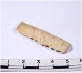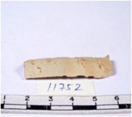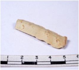 | Description / विवरण | A fragment of a rectangular shaped chert blade showing dorsal sides with sharp cutting edges having smooth surface and triangular section. |