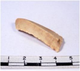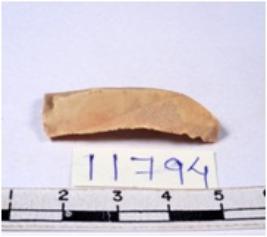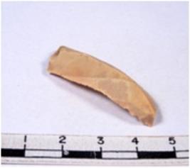| Description / विवरण | A fragment of a rectangular shaped chert blade showing dorsal sides with sharp edges having smooth surface and triangular section. |