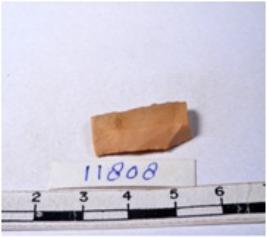 | Description / विवरण | A fragment of a rectangular shaped chert blade showing dorsal sides with sharp edges having smooth surface and triangular section. |