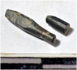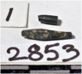 | Description / विवरण | A fragment of a stone drill bit, pointed one end, circular in section of rough surface. |