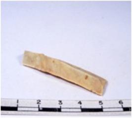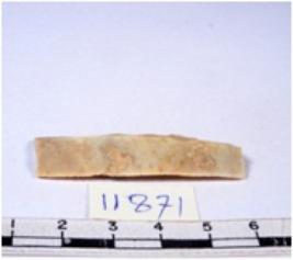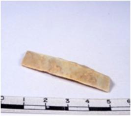 | Description / विवरण | A fragment of a rectangular shaped chert blade showing dorsal sides with sharp cutting edges having smooth surface and triangular section. |