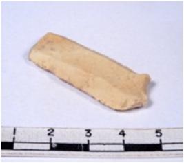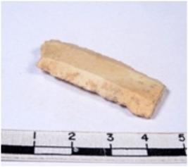 | Description / विवरण | A fragment of a rectangular shaped chert blade showing dorsal sides with sharp edges having smooth surface and triangular section. |