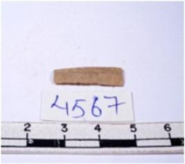 | Description / विवरण | A fragment of a rectangular shaped chert blade showing dorsal sides with sharp edges having smooth surface and triangular section. |