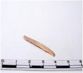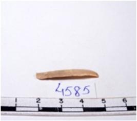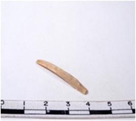 | Description / विवरण | A fragment of a rectangular shaped chert blade showing dorsal sides with sharp cutting edges having smooth surface and triangular section. |