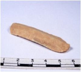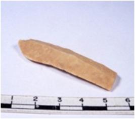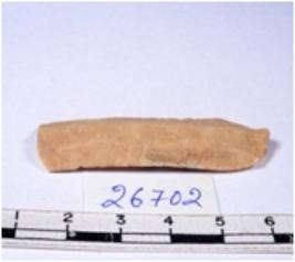 | Description / विवरण | A fragment of a rectangular shaped chert blade showing parallel sides with sharp edges having smooth surface and triangular section. |