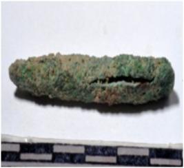 | Description / विवरण | A fragment ofa copper chisel broken from one end of rough surface. |