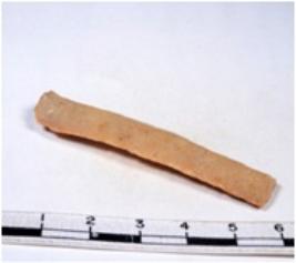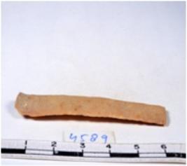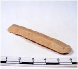 | Description / विवरण | A fragment of a rectangular shaped chert blade showing dorsal sides with sharp edges having smooth surface and triangular section. |