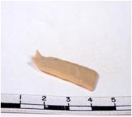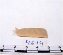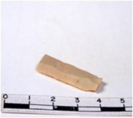 | Description / विवरण | A fragment of a rectangular shaped chert blade showing dorsal sides with sharp cutting edges having smooth surface and uneven section. |