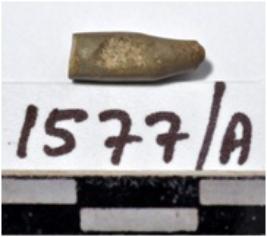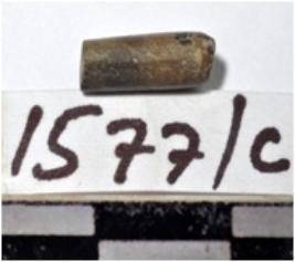 | Description / विवरण | A fragment of a stone drill bit circular in section broken from one end of smooth surface. |