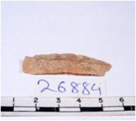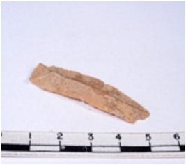 | Description / विवरण | A fragment of a rectangular shaped chert blade showing dorsal sides with sharp edges having smooth surface and triangular section. |