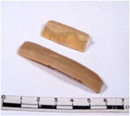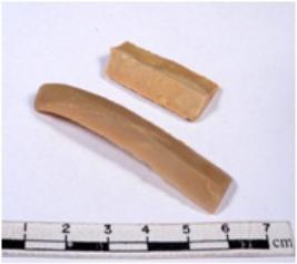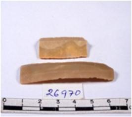 | Description / विवरण | A fragment of a rectangular shaped chert blade showing dorsal sides with sharp edges having smooth surface and triangular section. |