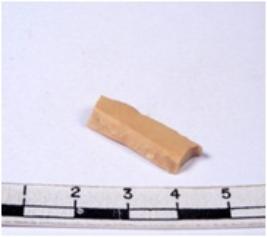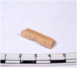 | Description / विवरण | A fragment of a rectangular shaped chert blade showing dorsal sides with sharp cutting edges having smooth surface and triangular section. |