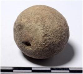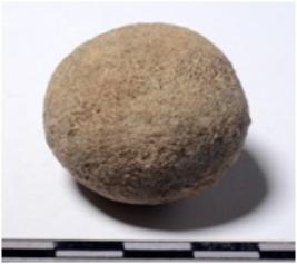 | Description / विवरण | A stone sling ball round in shape of rough surface. |