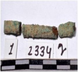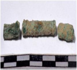 | Description / विवरण | A fragment of a copper rod, broken both end, circular in section of rough surface. |