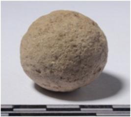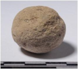 | Description / विवरण | A stone sling ball, round in shape of smooth surface. |