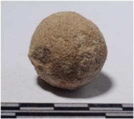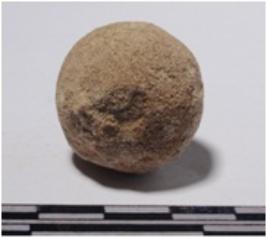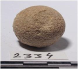 | Description / विवरण | A stone sling ball round in shape of rough surface. |