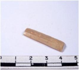 | Description / विवरण | A fragment of a rectangular shaped chert blade showing dorsal sides with sharp edges having smooth surface and triangular section. |
